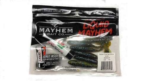 Available in both 3.5" and 5.0" options, our Mayhem Thrust Swim Minnow provides the perfect options for different times of the year. This bait has incredible action and is easy to rig. If you like fishing swim baits, you will love the Mayhem Thrust Swim Minnow.