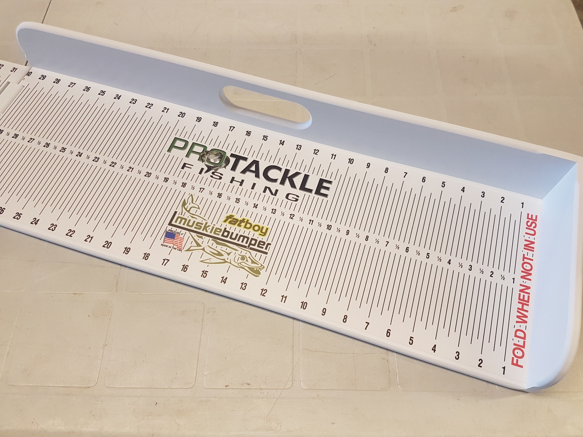 A folding 60 inch board that is approx. 10 inches wide for easy measuring of your Trophy Musky or Pike.