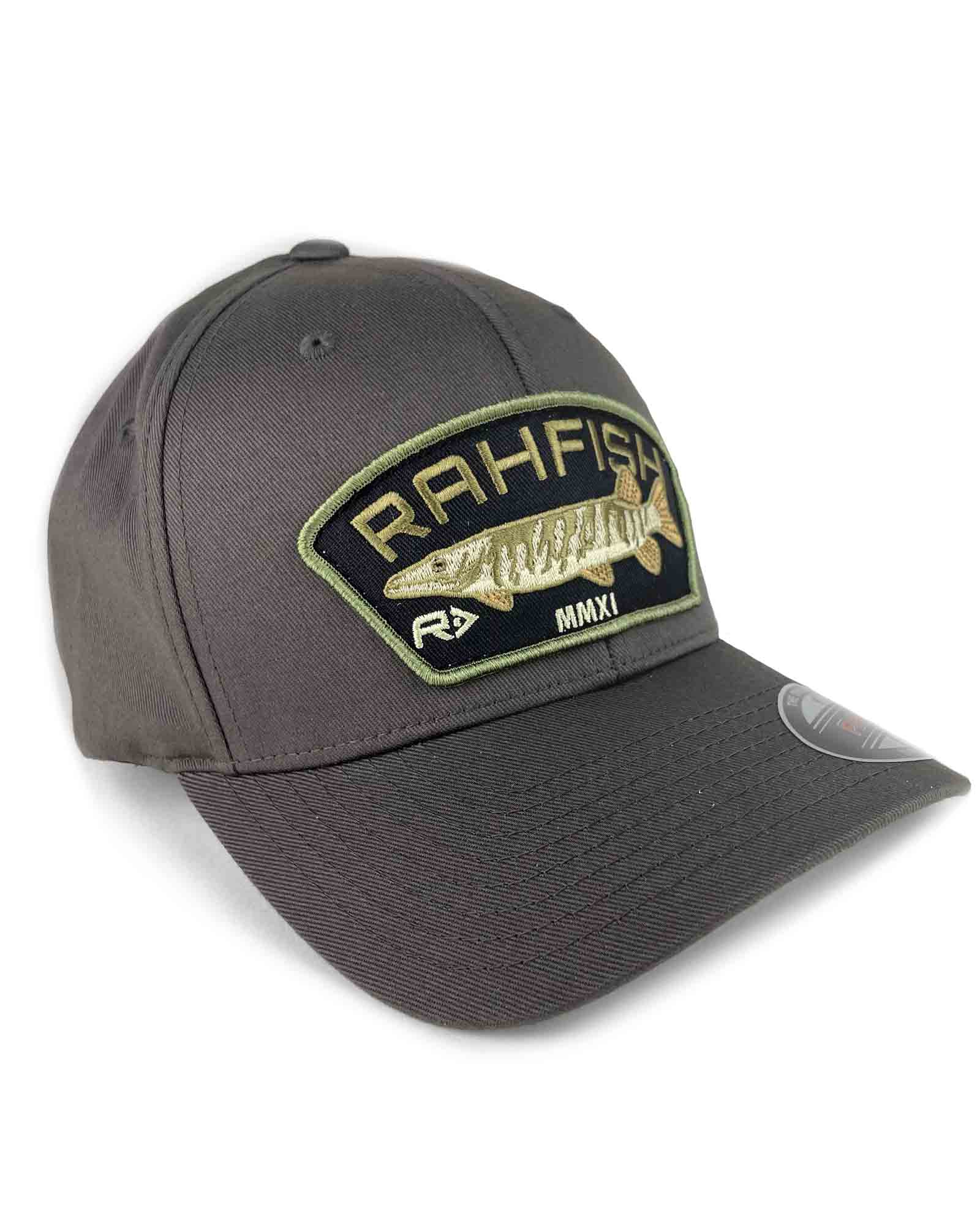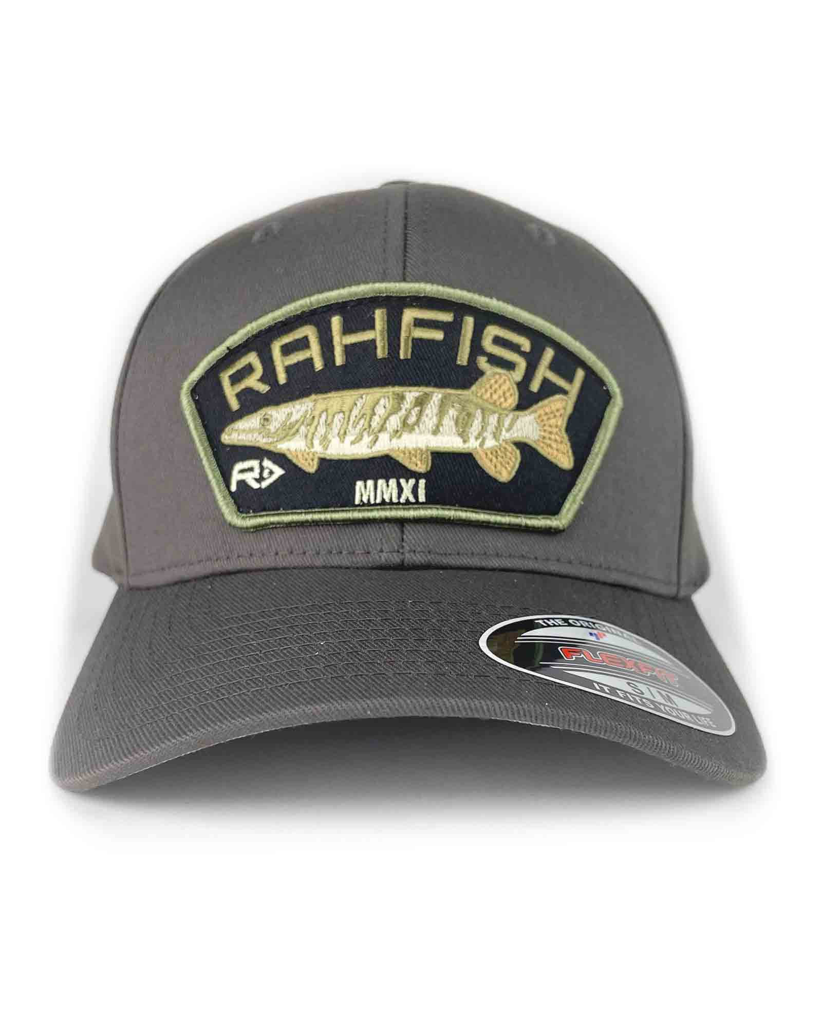 It has finally arrived! Our Rahfish Musky full back hat! Featuring our all new embroidered Musky patch on the ever popular dark grey flexfit hat!