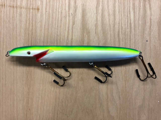 -This new 11" weighted model can be worked down to about 7 feet by casting or Trolling. With a constant reeling and a pumpping action of the rod you give this bait an aggressive chop style action with a zig-zag dying fish presentation.