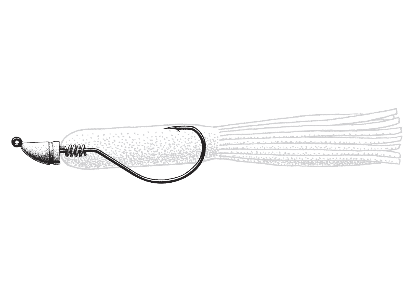 Sled Head- With Screw-Lock Shank. For fresh or saltwater, unique shank keeps rigged soft plastics firmly in place. The leadhead (with a groove for rigging skirts) is molded around a strong, wide-bite riggin style hook, all carefully balanced to ride in an optimum hook-setting position. Great for flippin and pitchin, and for weedless applications. Hook features a Super Needle Point and black chrome finish.